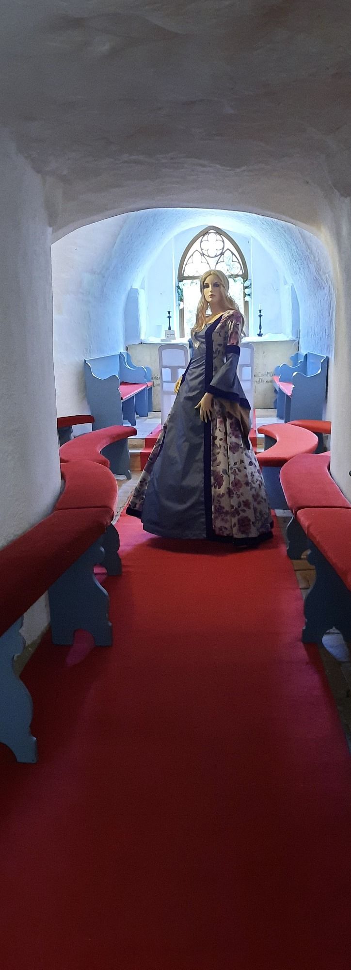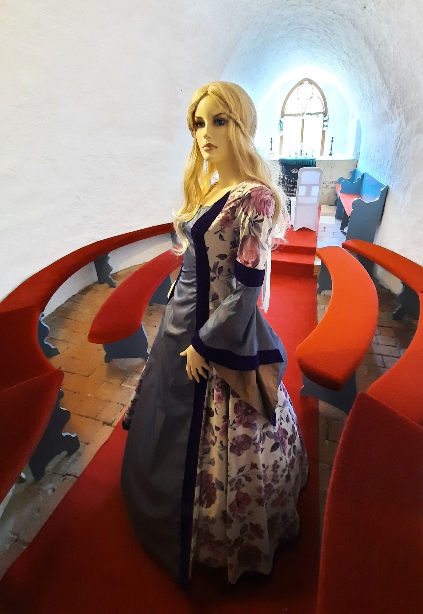 "Hier, in dieser Turmkapelle, vor allen herbeigerufenen Ahnen, verwünschte mich im Zorn mein Vater dazu, unsichtbar für jeden Menschen, 12 Hemden aus Leinen zu nähen. Aber, ach kleine Silberflügel, ich darf nur alle 50 Jahre einen einzigen Nadelstich tun." Ich fragte Rosemarie: " Gibt es keine andere Rettung für Euch?" Traurig sagte Rosemarie: "Doch, eine Rettung gäbe es noch für mich".....