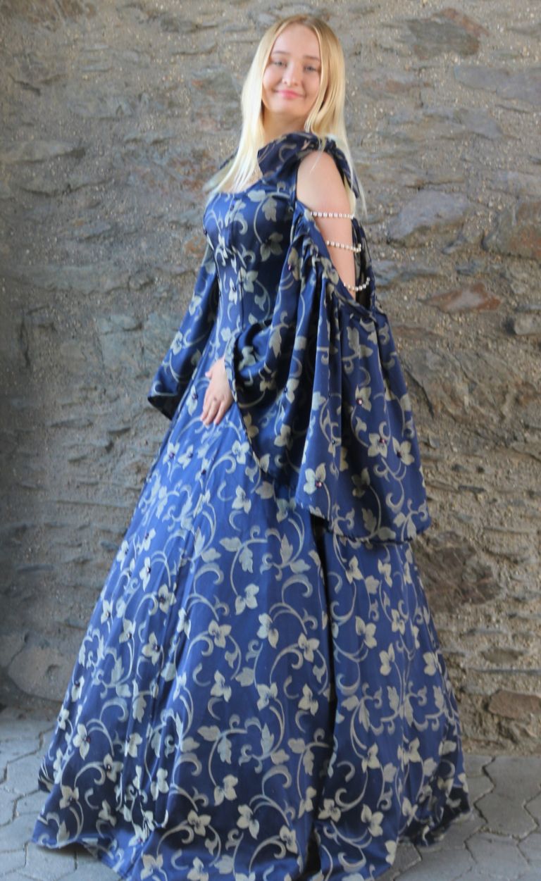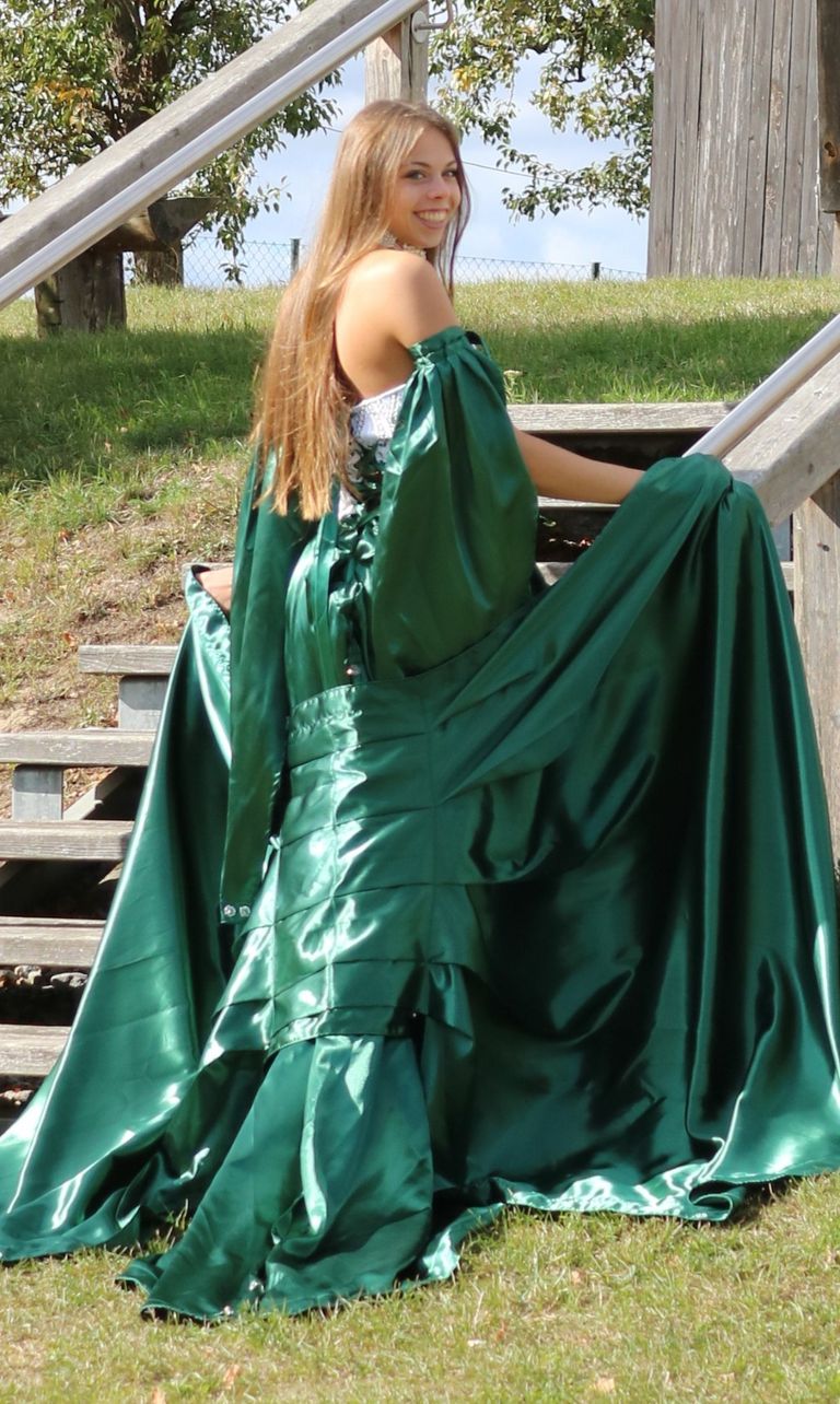 Die Verbundenheit zum Wasser spiegelt sich in der Farbe und den Perlen des Kleides wie ein Schatz des Meeres wieder.